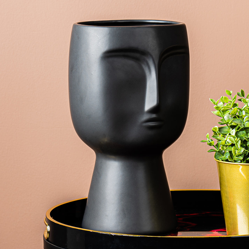 32.8cm Matte Black Face Design Ceramic Vase