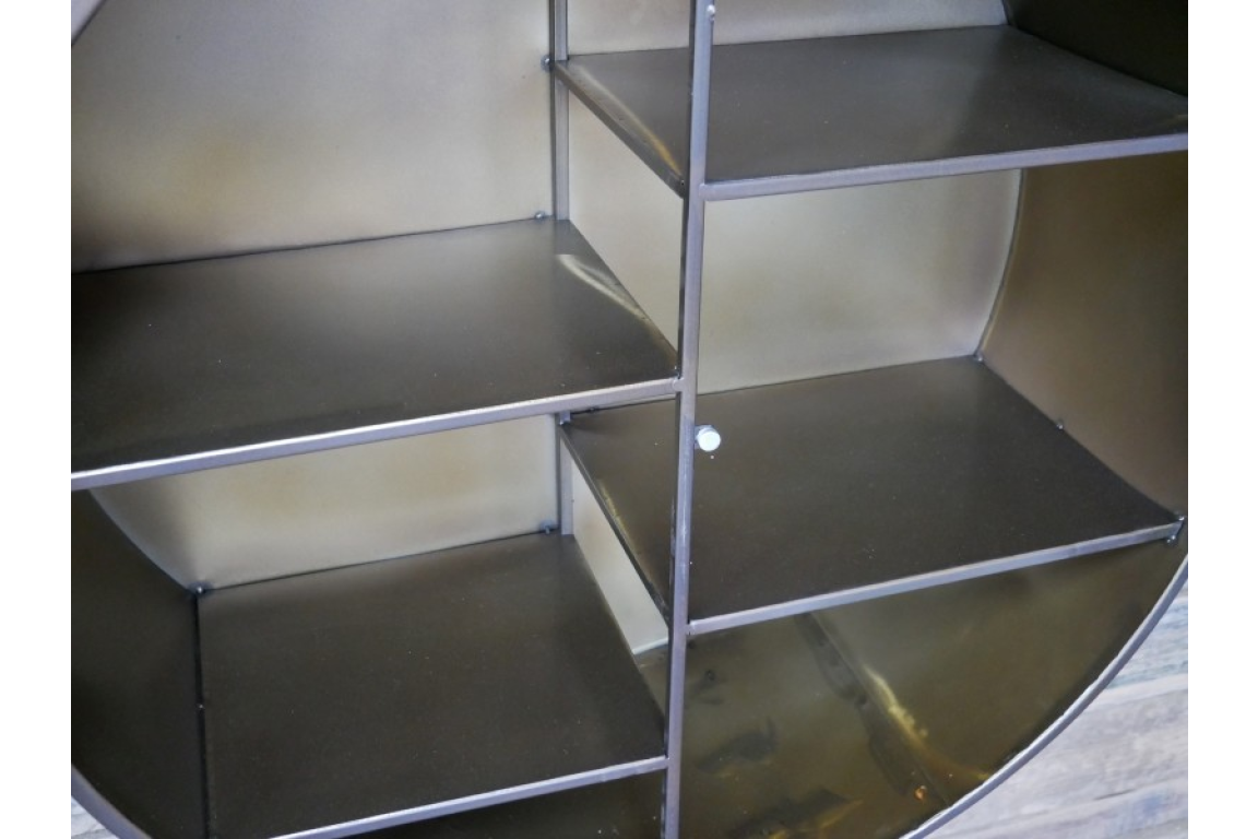 Industrial Style Metal Circular Display Cabinet, Vintage Gold