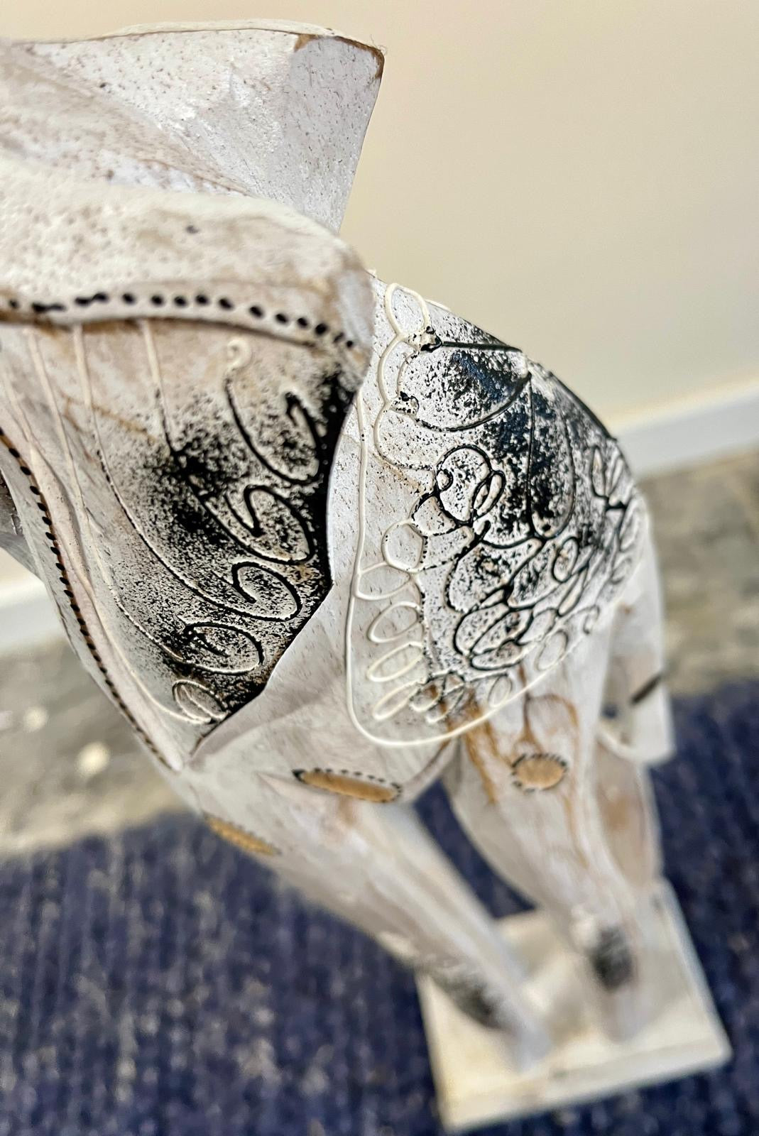 Wooden Patterned Elephant Statue 93cm
